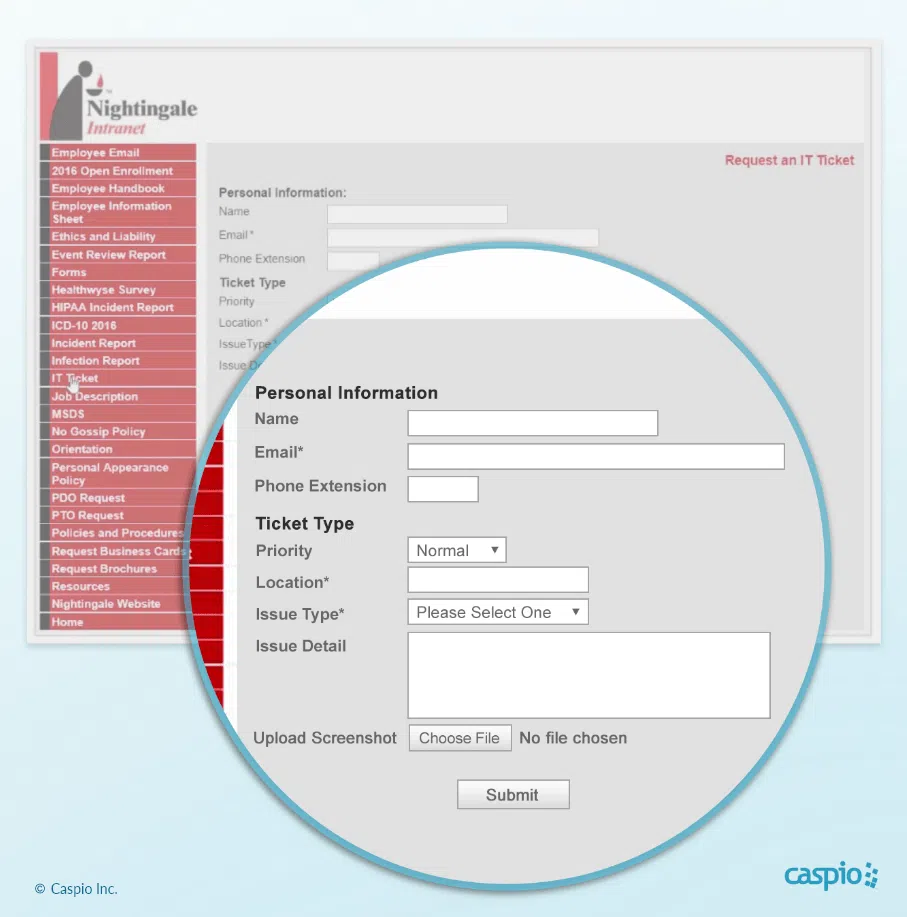 Customized web forms allowed Nightingale employees to submit various requests to managers and receive timely status notifications.
