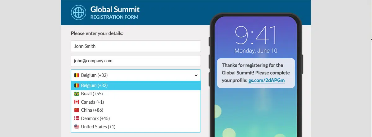 Want to improve the attendance rates of your international and local events, whether virtual or face-to-face? Add SMS alerts in addition to traditional email notifications. Start by capturing each attendee’s phone number on the registration form and then send timely reminders as the event approaches. You can personalize the experience by sharing important tips, exclusive offers or other user engagement techniques. You can also send SMS notifications to event managers to notify them about event deadlines, registration benchmarks and important reminders.