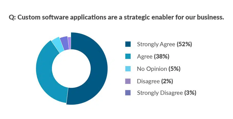 We found that over 90% of respondents consider custom applications as a strategic enabler for their business. Yet, almost 80% reported having insufficient resources to deliver these critical apps.