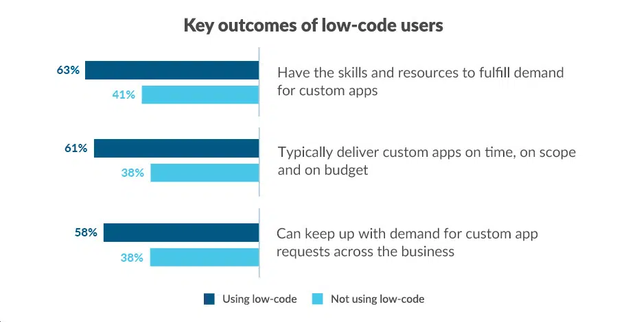 The most striking takeaway from our research is the difference in key outcomes reported by respondents that leverage low-code development platforms.