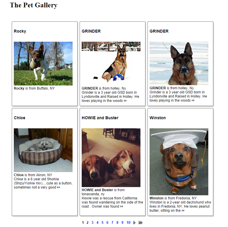 - Photo Gallery: People love to browse photos online. With Caspio, not only can you publish a photo gallery on a website quickly, you can also turn it into an interactive project to engage with readers, just like WGRZ did with their photo contest. They asked readers to submit photos of the cutest pets in West New York as part of a large fundraiser benefiting their local animal shelter.