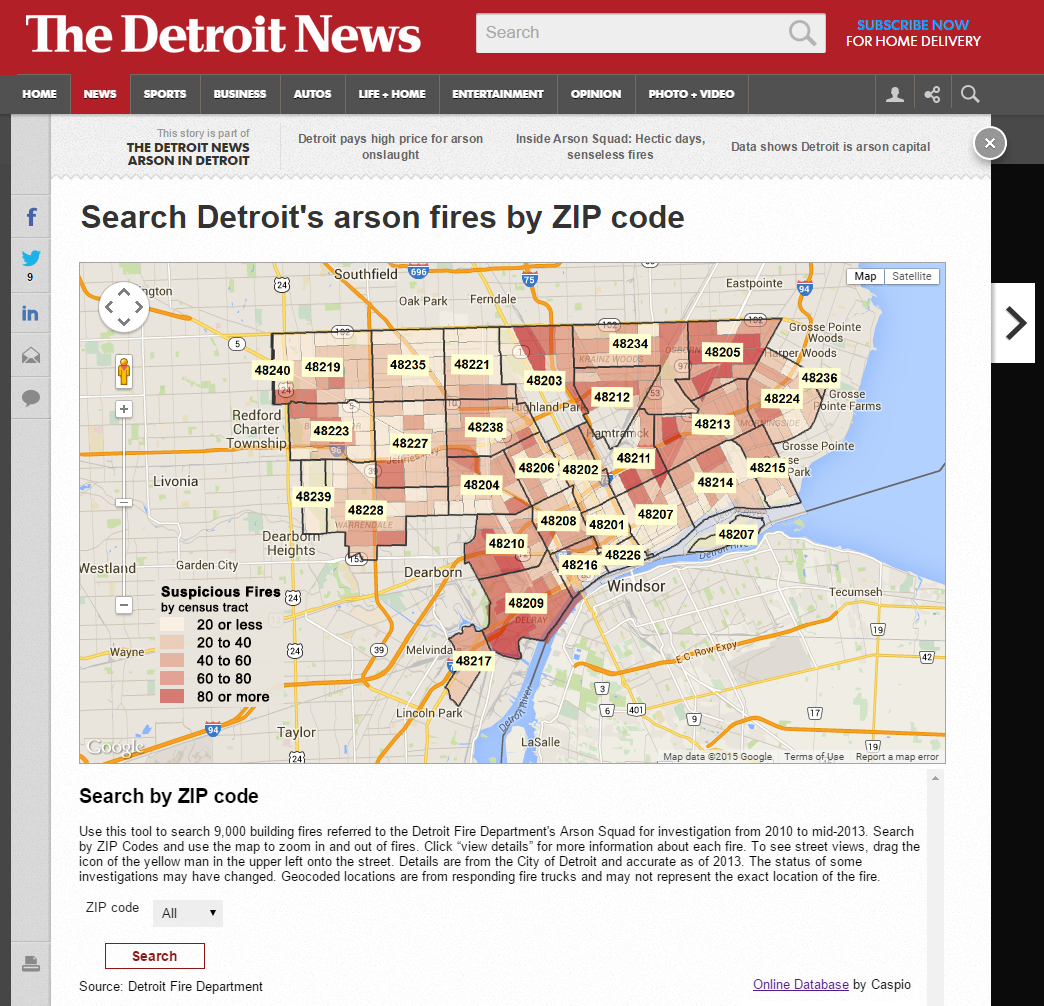 The surplus of available content has shaped the browsing habits of readers who prefer to quickly digest and share visual content – photos, infographics, charts, maps, and other data interactives. When the Detroit Free Press, a long-time Caspio customer, reported on the impact of arson across the city, they visualized the data in a heat map to effectively show the geographic areas hit the hardest by arson.