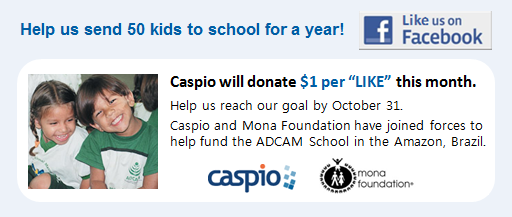 Caspio has partnered with the Mona Foundation to help support a school in the Amazon, Brazil. Our team has created a fund where contributions are matched by the company and 100% of the money will go directly to the school. Our goal is to send 50 children to school in 2012, so we are extending our pledge out to the community to also support the cause.