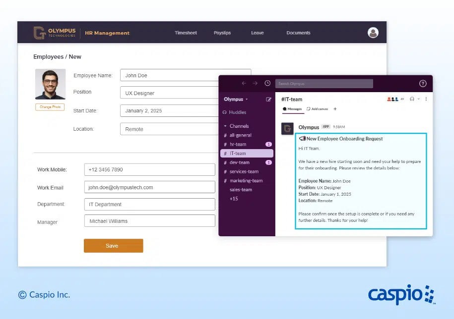 If a company uses Caspio as a CRM to manage sales leads, the extension can be configured so that when a prospect submits a web form, Caspio sends an automatic notification to a designated Slack channel. Based on how these messages are configured, they can include all relevant lead details, such as name, company, inquiry type and budget range, with a direct link to the CRM for more information. This instant notification allows sales representatives to act promptly, improving lead response times.