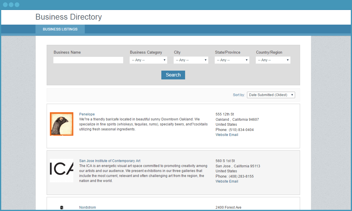 Once deployed, business owners can register and submit new listings, public users can search for businesses by various criteria, and administrators can manage all the listing information in one place.