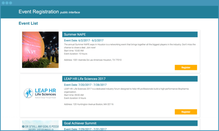 Even the most-skilled planners face some logistical challenges managing the event registration process and all the resulting data – event details, invitee lists, registrant lists, actual attendee lists, email confirmations, email follow-ups, etc. This is especially true when managing multiple events.