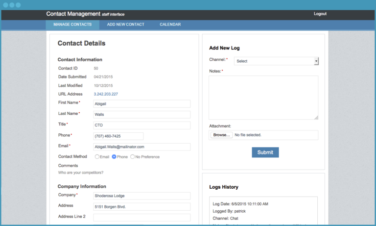 - Manage follow-up dates, enter notes, and update the status for each contact