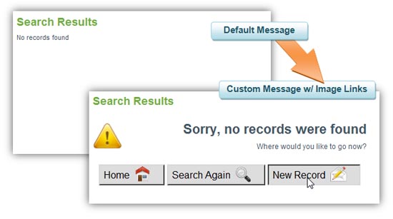 - Offer next steps like “Search Again” or “New Record” when no records are found.