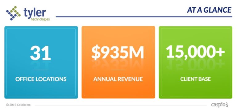 To date, the company has a total of 31 offices in 17 states and in Ontario, Canada. With an estimated annual revenue of $935 million and a client base of over 15,000 cities, counties, schools and other government entities around the world, Tyler Technologies is a global leader in software solutions.