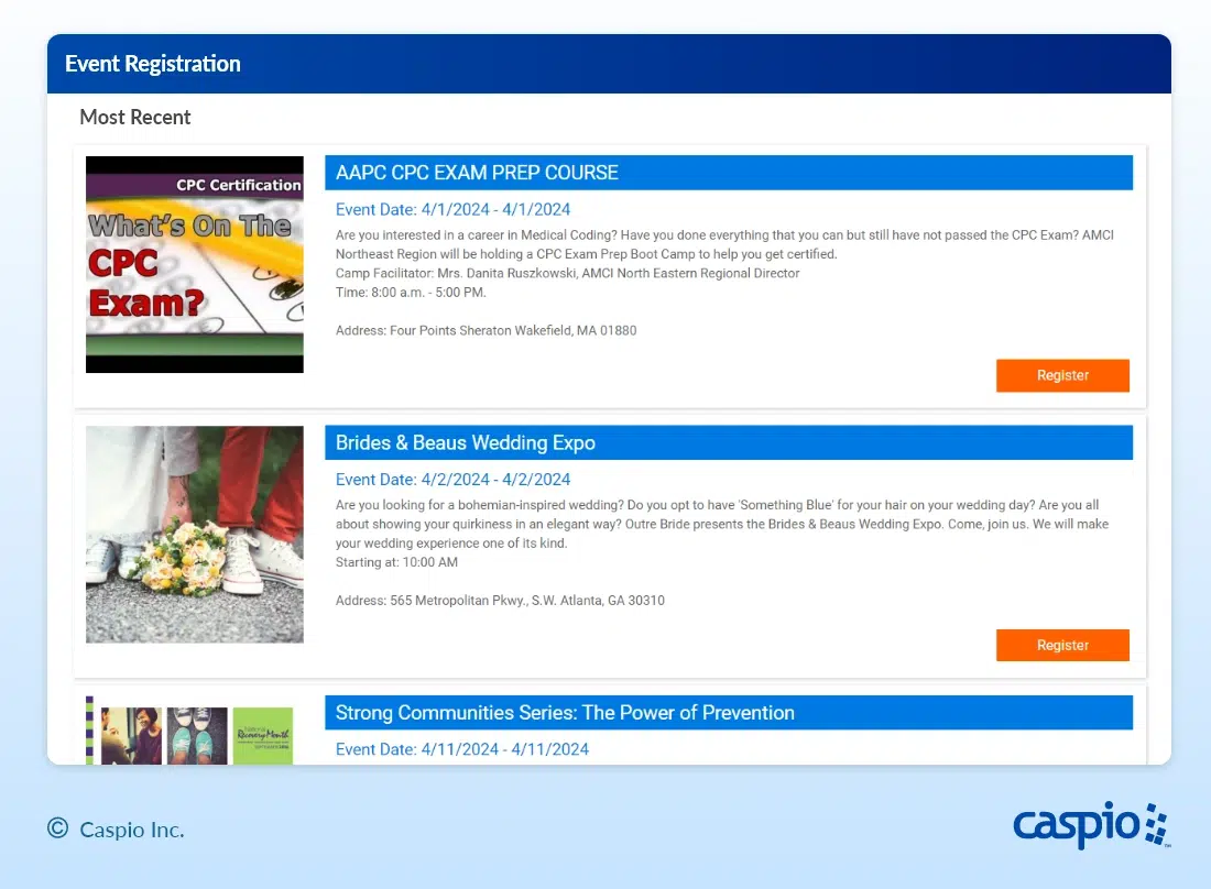 REGISTER NOW: Manage event registration directly on your website with Caspio’s free and customizable template.