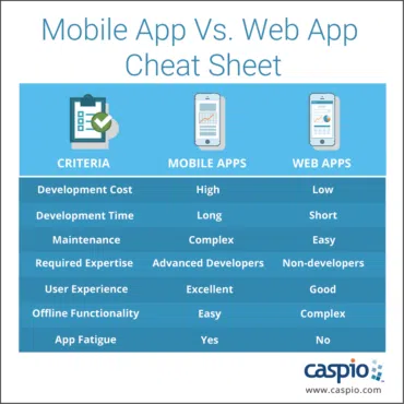 Mobile app development requires in-depth knowledge of several coding languages to be able to write for different platforms. Web apps, on the other hand, don’t require highly-skilled developers. Even non-IT folks can build sophisticated web apps with tools like Caspio.