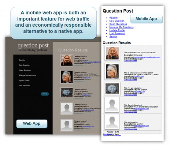 Instead of the individual design, development, and testing involved with a customized app for each device, Caspio’s embeddable DataPage interfaces function in the same way whether loaded on a desktop, mobile, or handheld browser giving consistent access to the same online database.