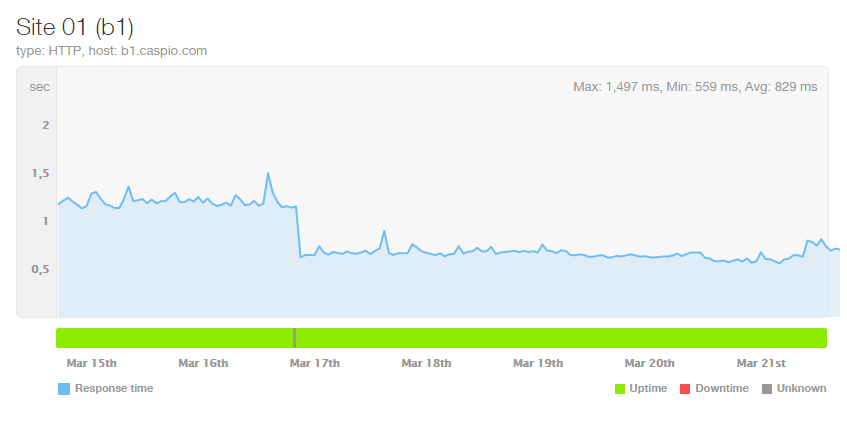 We have optimized various areas of the Caspio platform to significantly improve the overall speed of your applications, resulting in 40% faster response times on average. You can expect even more performance improvement for DataPages containing data-heavy lookups, complex queries, or a large number of fields. As shown below, Caspio’s third-party monitoring service at https://status.caspio.com shows a 63% performance improvement immediately after the 9.1 release: