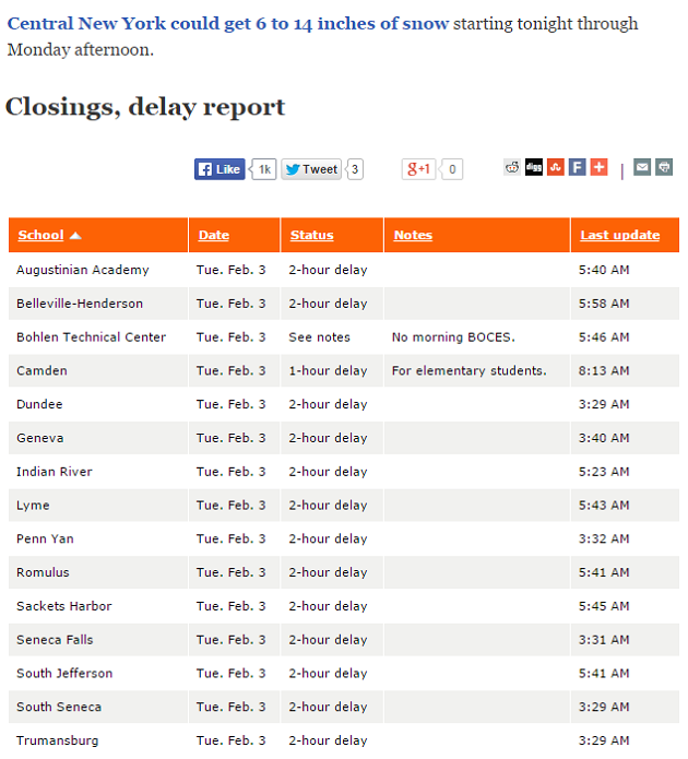 Showcase: Syracuse.com Publishes Database of School Closings During Winter Storms