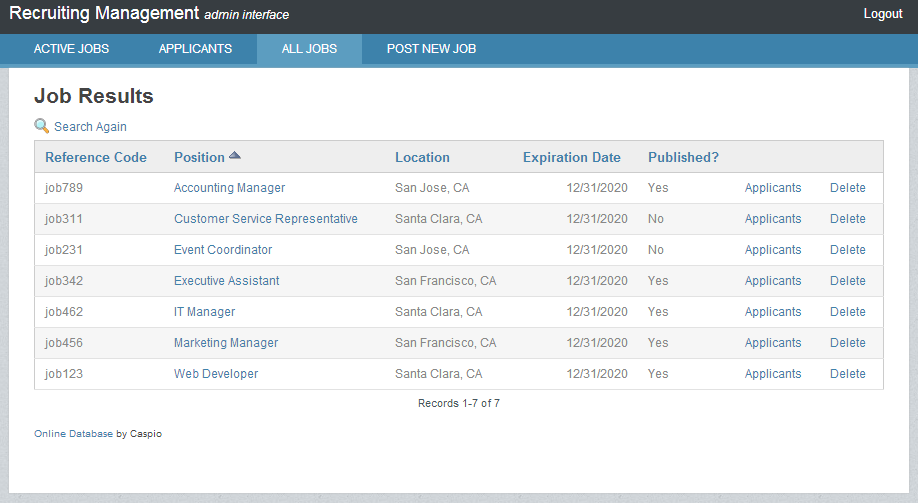To give you a better idea of the types of HR cloud applications you can create with Caspio, we have recently revamped two popular app templates: Recruiting Management and Vacation Requests.