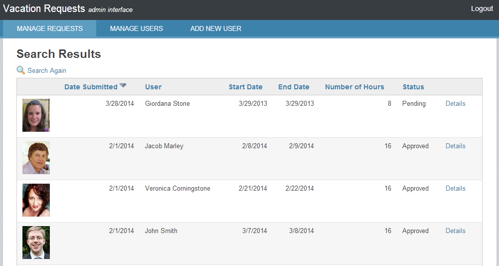 • Admin staff and managers can view, manage and  track all vacation requests in one place