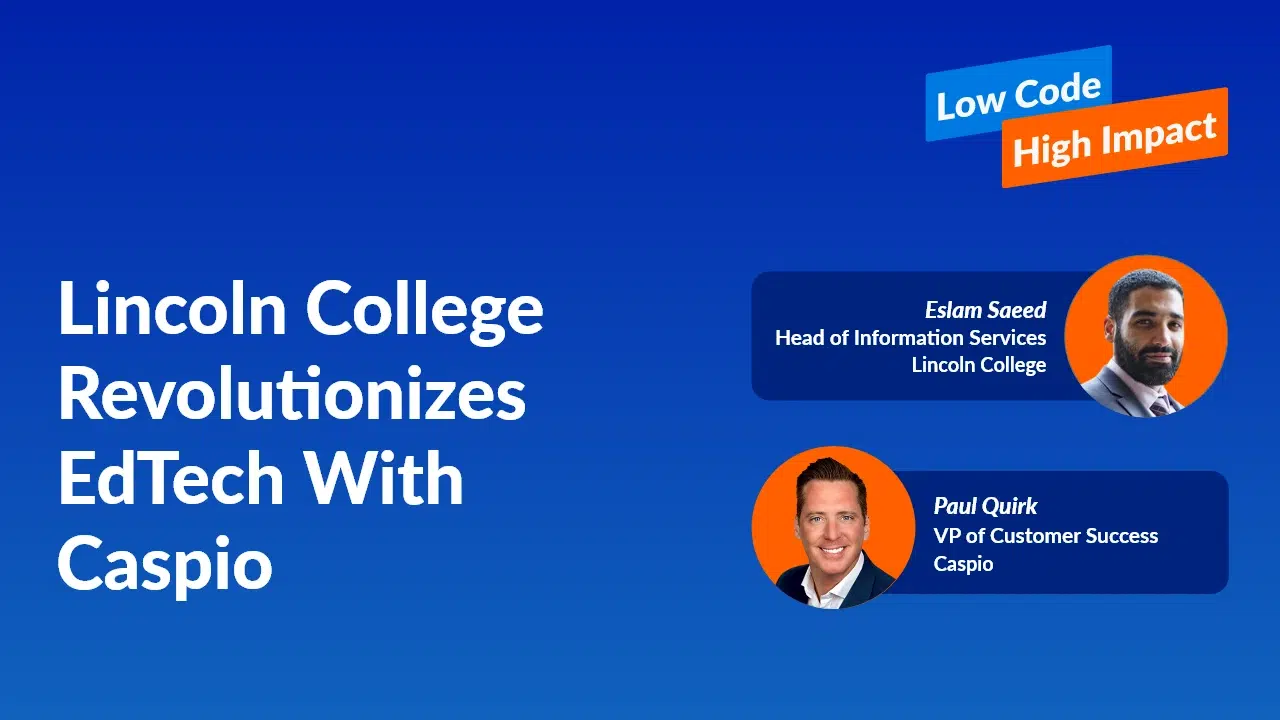 In this interview, we sit down with Eslam Saeed, Head of Information Services at Lincoln College, a global education provider that’s been using Caspio for over four years to transform the way they operate. Learn how they outgrew Sharepoint and transitioned to Caspio to improve speed, usability, and time to market, serving not just their end users – students and teachers – but also multiple departments.
