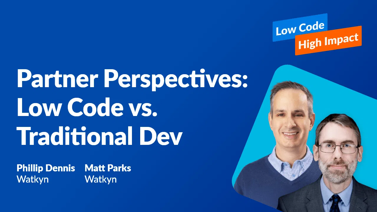 In this video, we’re joined by Phillip Dennis, Founder of Watkyn, and Matt Parks, the company’s President, as we dive into the ongoing debate about low-code/no-code (LCNC) platforms versus traditional development.