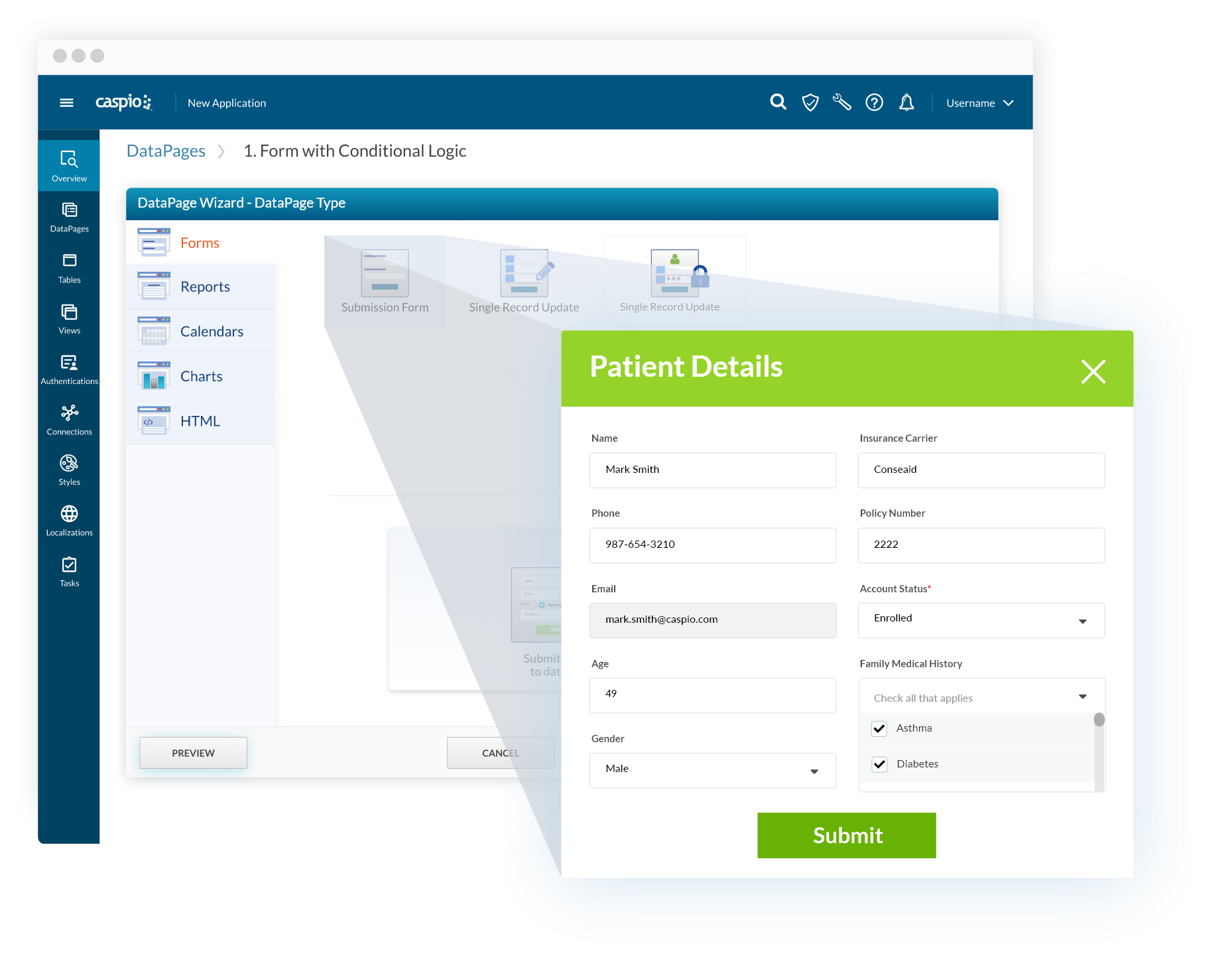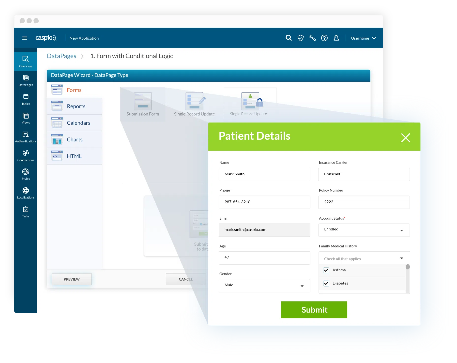 Caspio is an all-in-one, no-code platform to build data-driven healthcare applications at speed and scale.