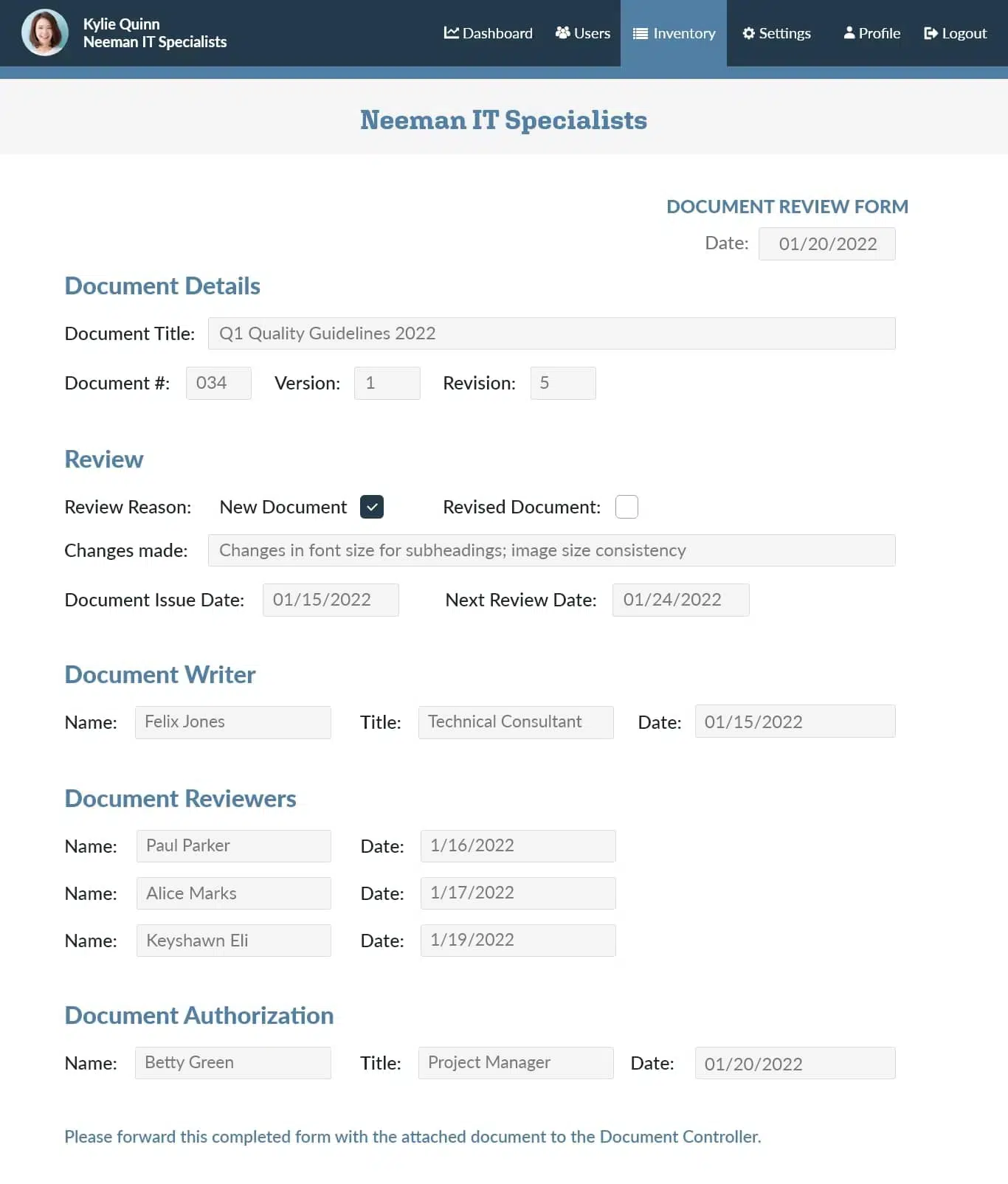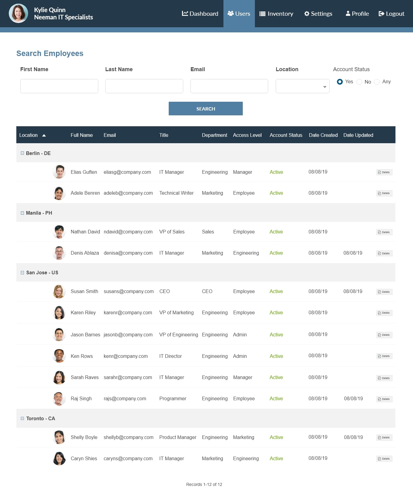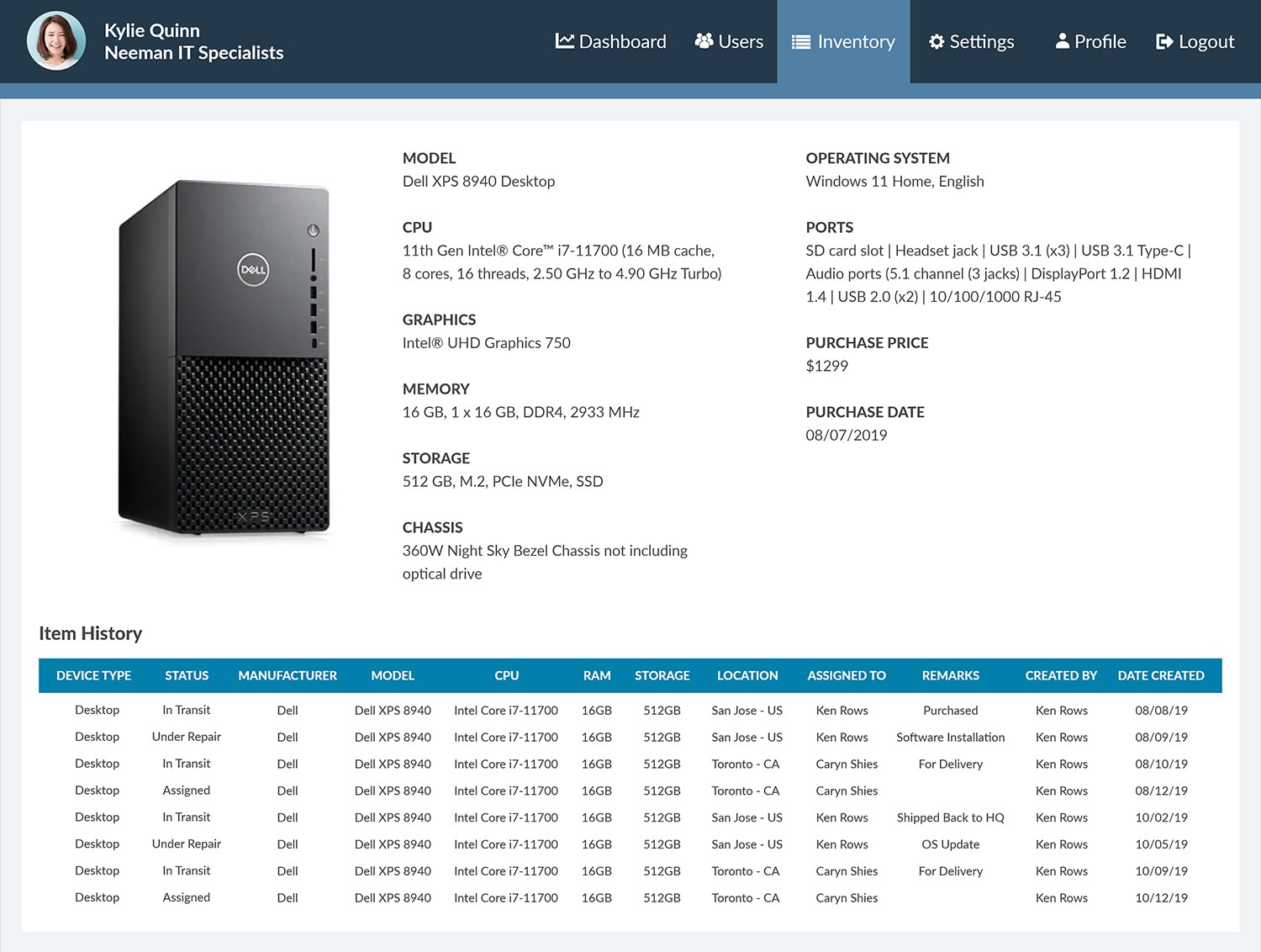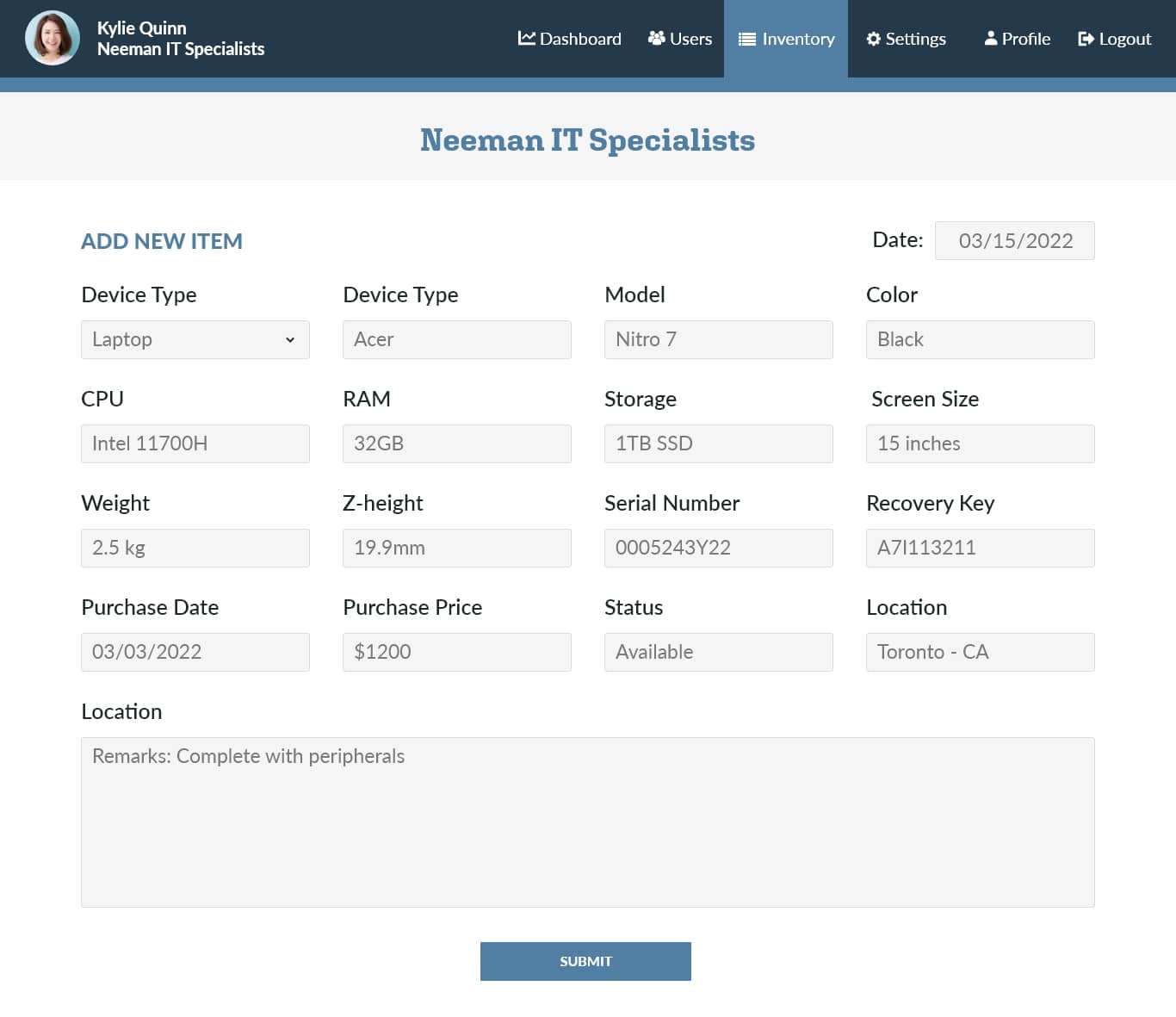 Create Custom Web Forms: Build various digital forms for updating user profiles, submitting new inventory, assigning items, changing details