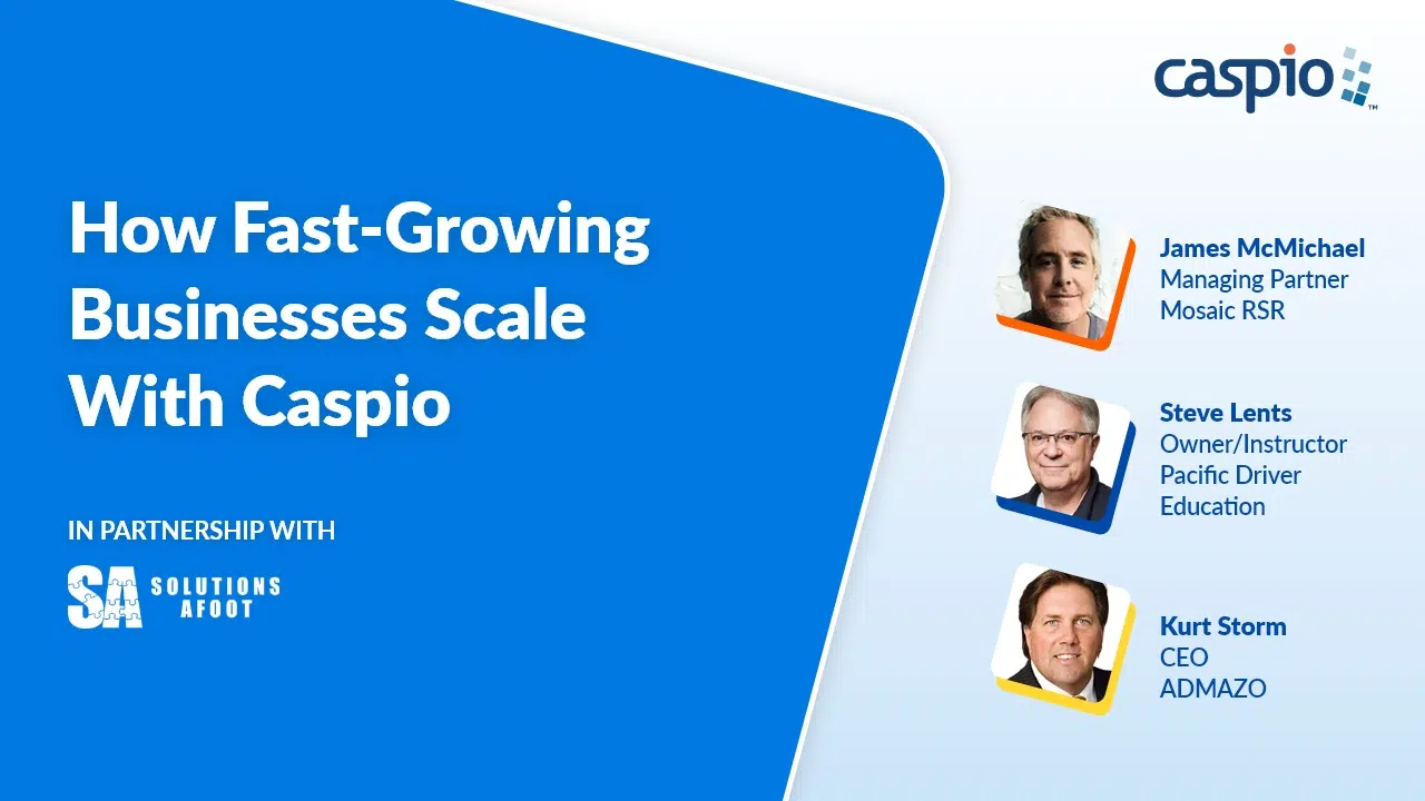 Watch this webinar to hear how Caspio partner Solutions Afoot and their clients, such as Mosaic RSR, Pacific Driver Education and ADMAZO, leverage Caspio’s low-code platform to build custom web applications. Learn about the ROI of low code in their firm, best practices from experts and the end-to-end development process using the Caspio platform.