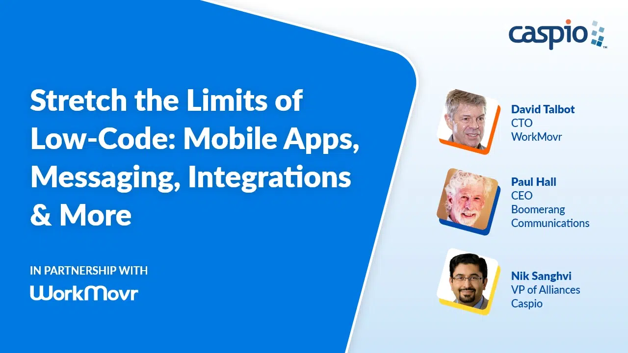 Think low-code development is only suitable for simple forms and reports? In this webinar, you’ll discover how long-time Caspio partner WorkMovr creates massive business opportunities by extending our low-code platform to build cross-platform mobile apps (iOS & Android), dynamic international localizations and financial transactions with FinTech integrations.
